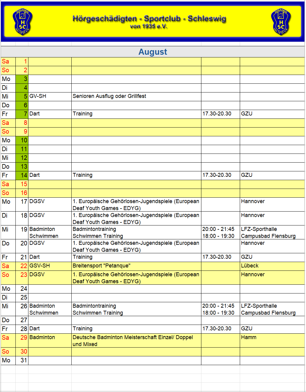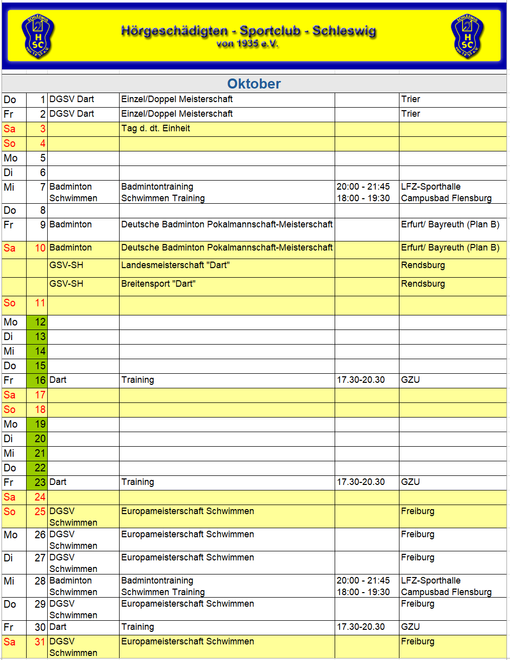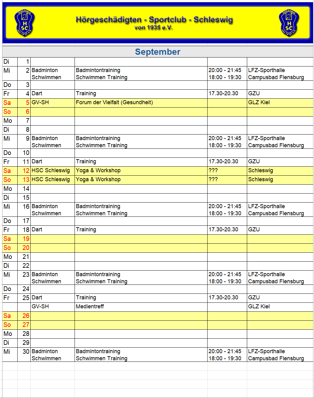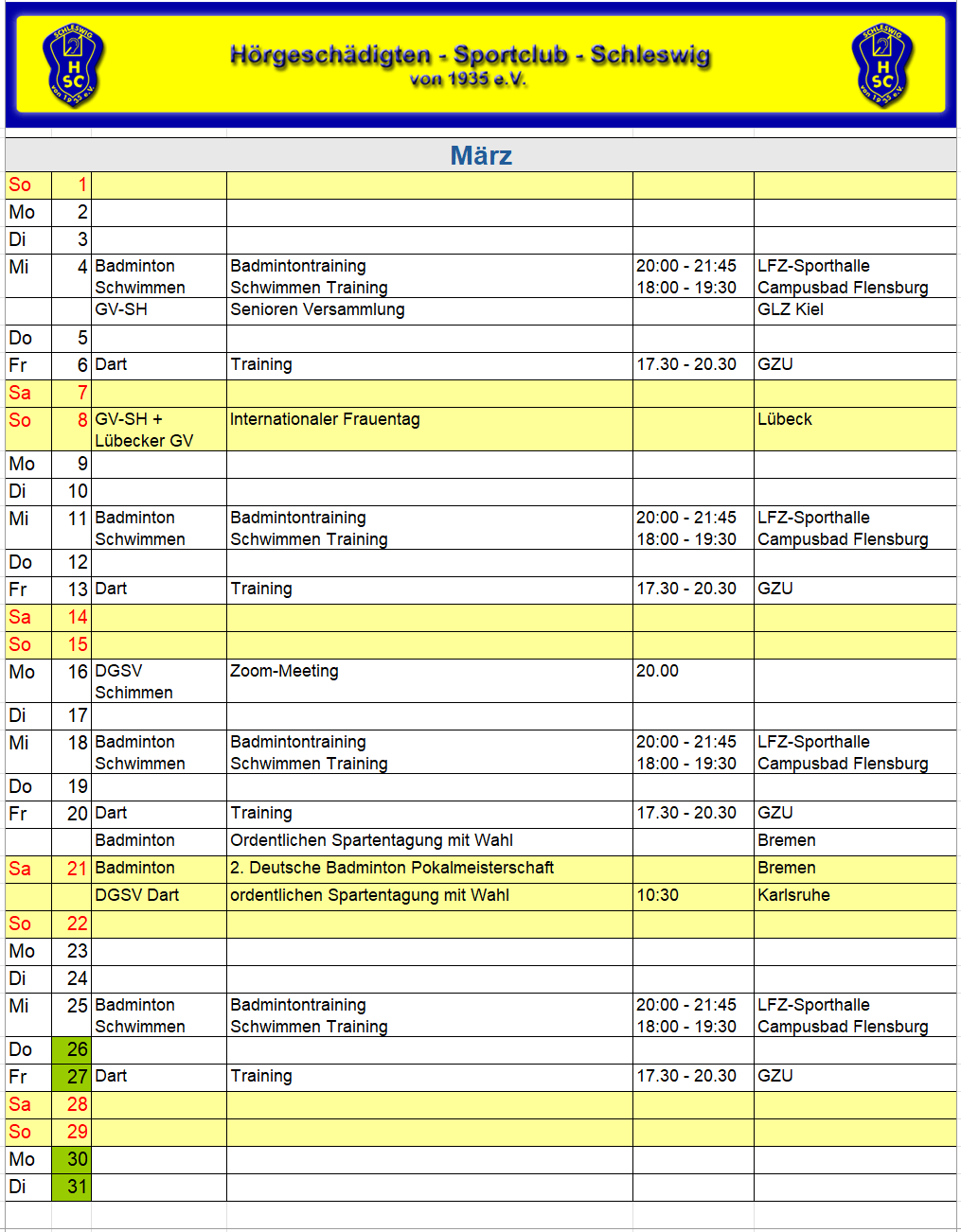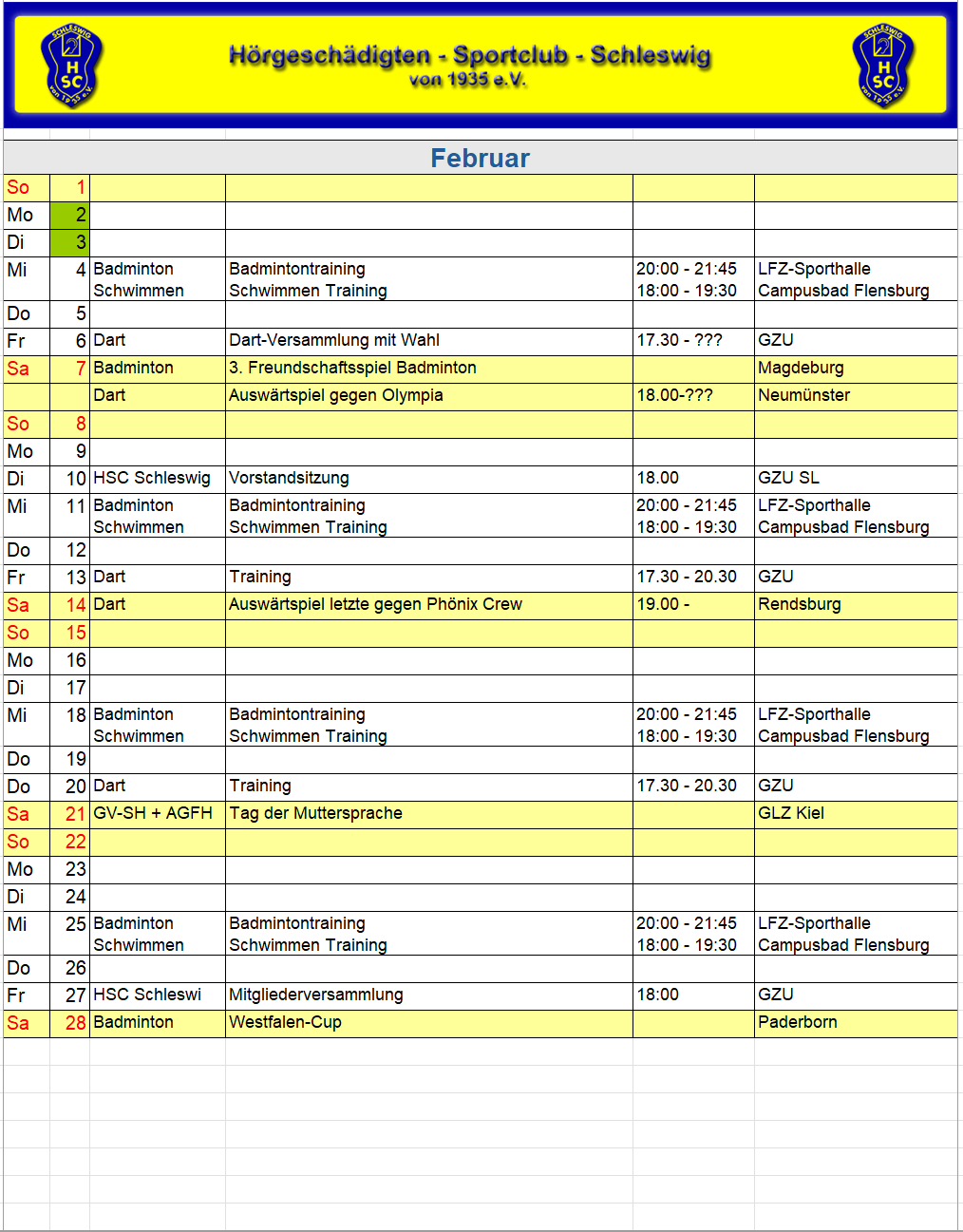 HSC Sportkalender 2026