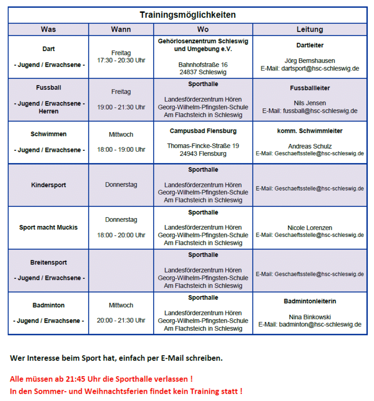 Die Seite mit den Trainigsmöglichkeiten beim HSC wurden aktualisiert.
