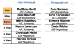 Im Herren Einzel sind nur 2 Gruppen, 4 Herren aus dem gleichen Verein Magdeburg und 2 Herren vom HSC Schleswig, müssen die Spieler in getrennten Gruppen auslosen.