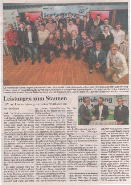 Bei der Sportlerehrung im Haus des Sports zeichnete LSV-Präsident Hans-Jakob Tiessen 70 Athleten aus. Mit dabei waren auch