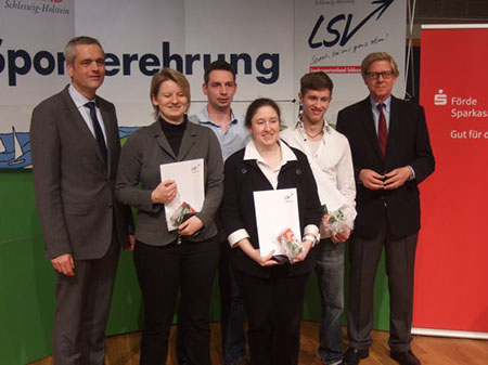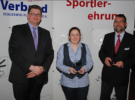 Für besondere Dienste im Sport wurden Monika Wiech (vom ehemaligen Verein GSF Neumünster) und Andreas Schulz (HSC Schleswig) ausgezeichnet.