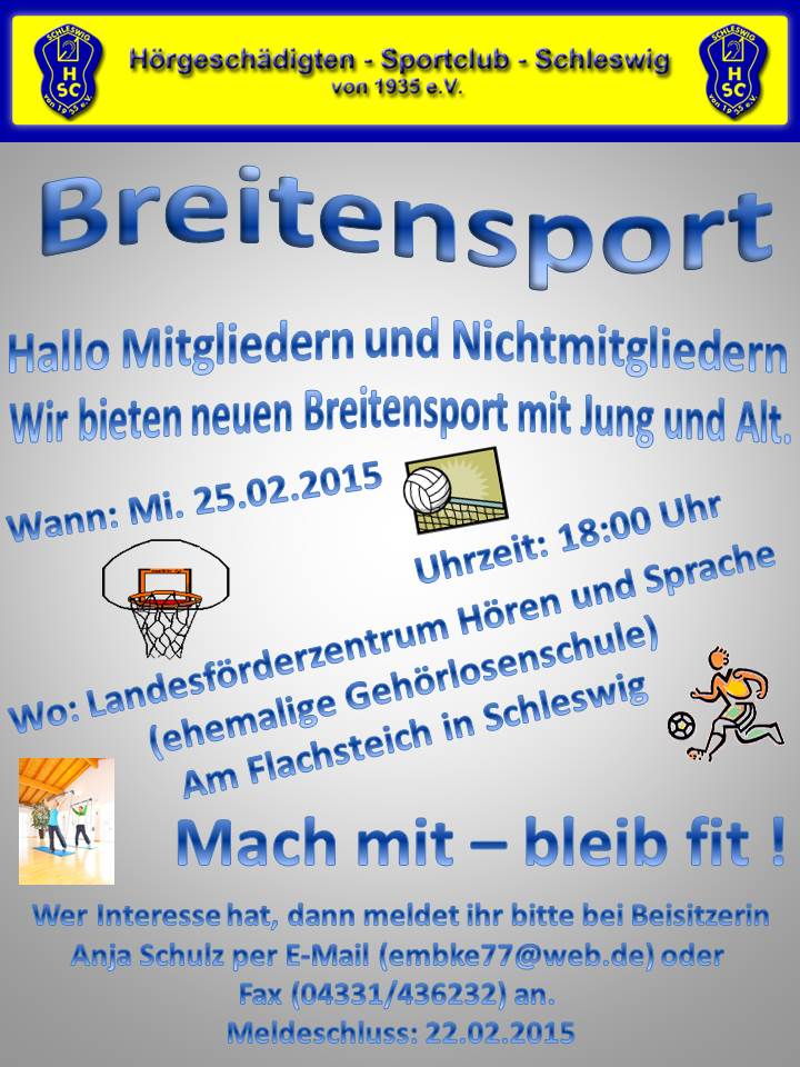 wir möchten am 25.02.2015 eine Breitensportabteilung gründen und suchen dafür noch interessierte Sportler/innen.