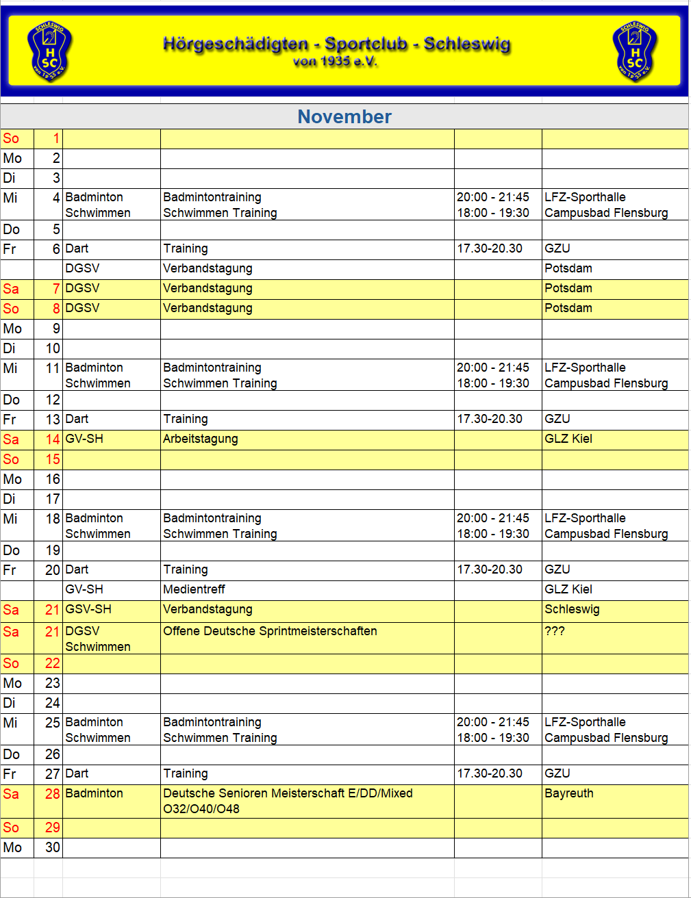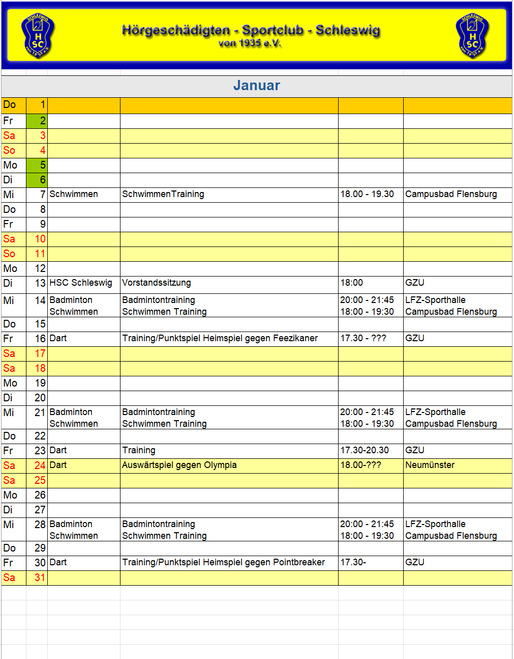 HSC Sportkalender 2026