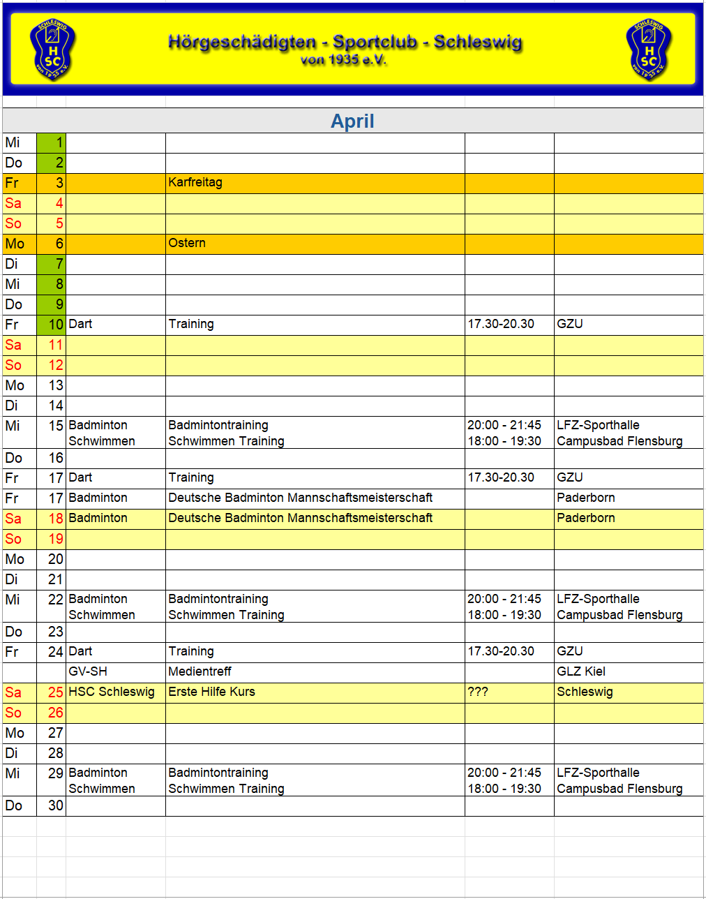 Der HSC Sportkalender als PDF: